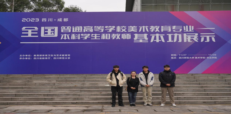2024年3月8日,第三届全国普通高等学校美术教育专业本科学生和教师基本功展示活动在四川师范大学举行,来自107所高校的346名师生参加比赛。本次基本功展示设教学展示、专业能力展示、经典作品赏析三个项目。我校荣获团体奖,学院赵想俊、王杰两位同学荣获单项奖。