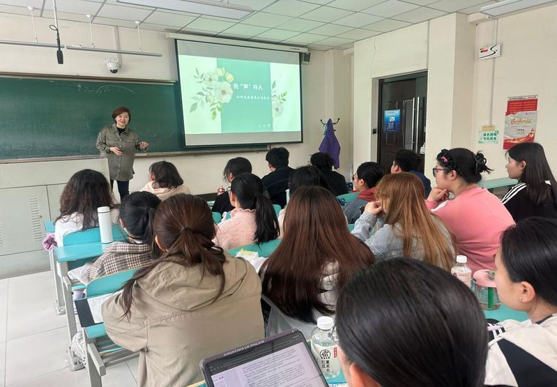 4月12日上午,来自石河子市融媒体中心著名主持人王丹走进博学楼C区117教室,给新闻与传媒系广播电视学2021级1班的学生带来了一堂先“声”夺人的课程。