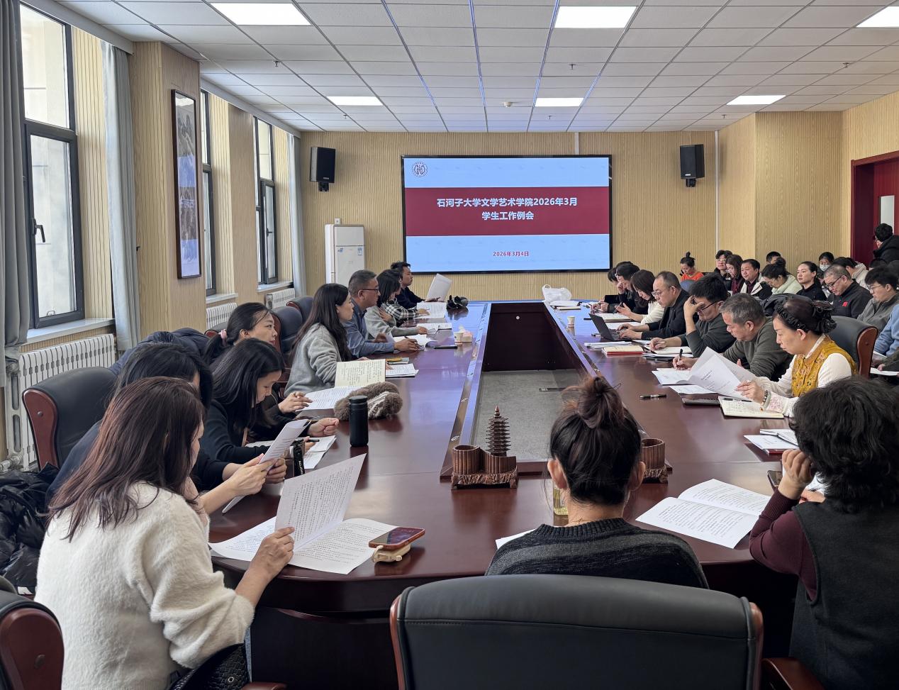 3月4日,9778818威尼斯在文212会议室召开新学期学生工作例会,围绕“新学期、新部署、新作为”主题,系统谋划、全面启动本年度学生工作。学院党委书记宋育果出席会议,各系主管学生工作领导、全体辅导员及本研班主任参加会议。